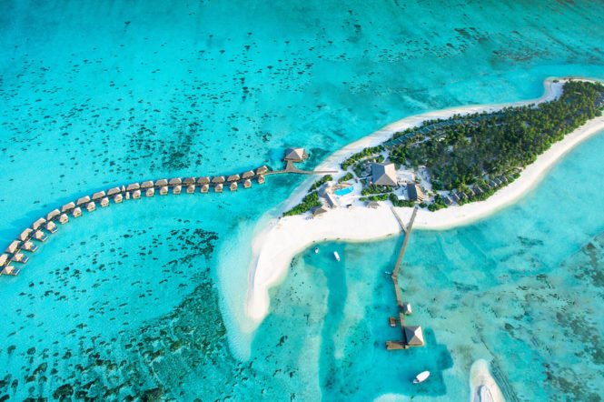 يقع Siyam World Maldives في جزيرة Dhigurah ، ويمتد على طول 1.5 كيلومتر من الشعاب المرجانية في Noonu Atoll